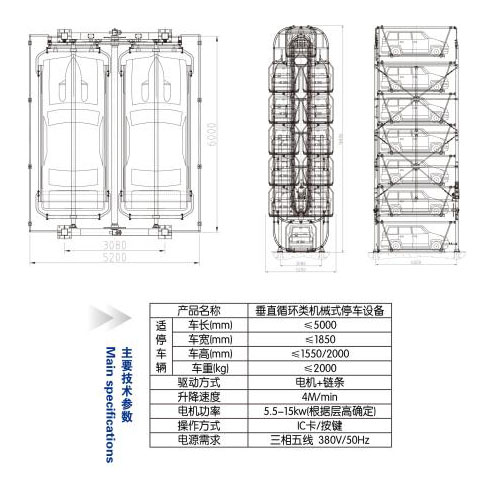 ●垂直循环类停车设备一般不需要强制通风,无大面积照明,耗电量仅为普通地下车库的35%控制方式和操作方式;